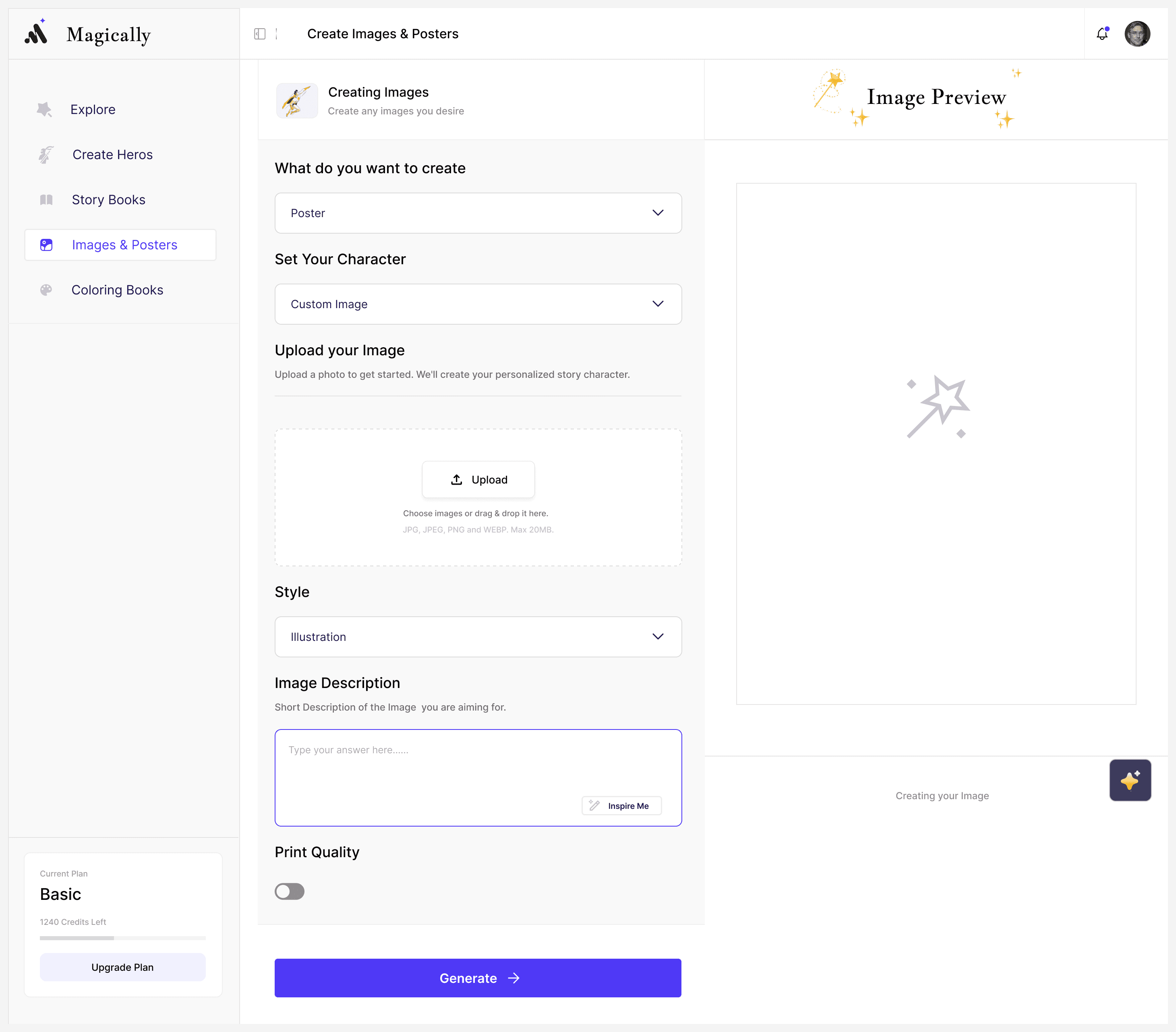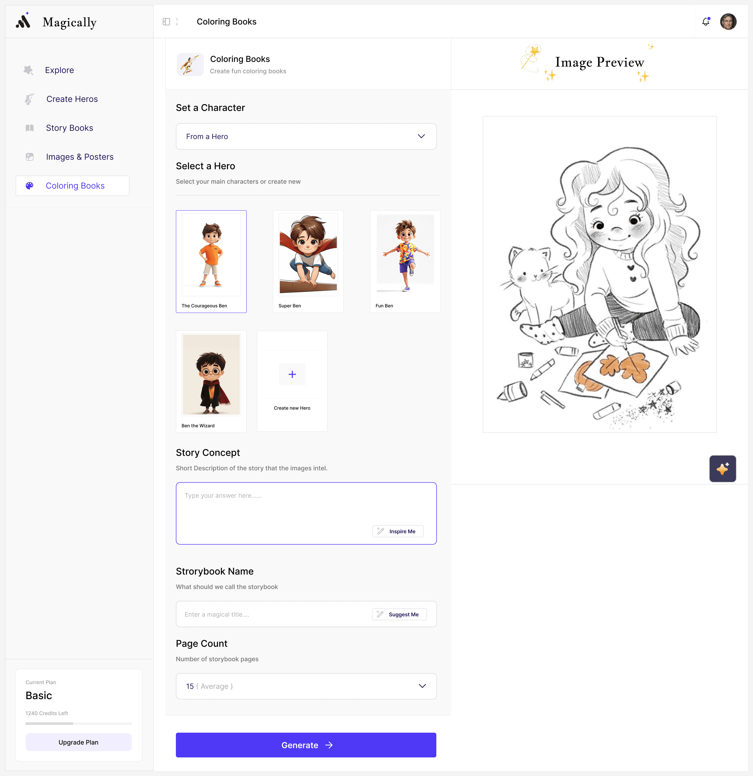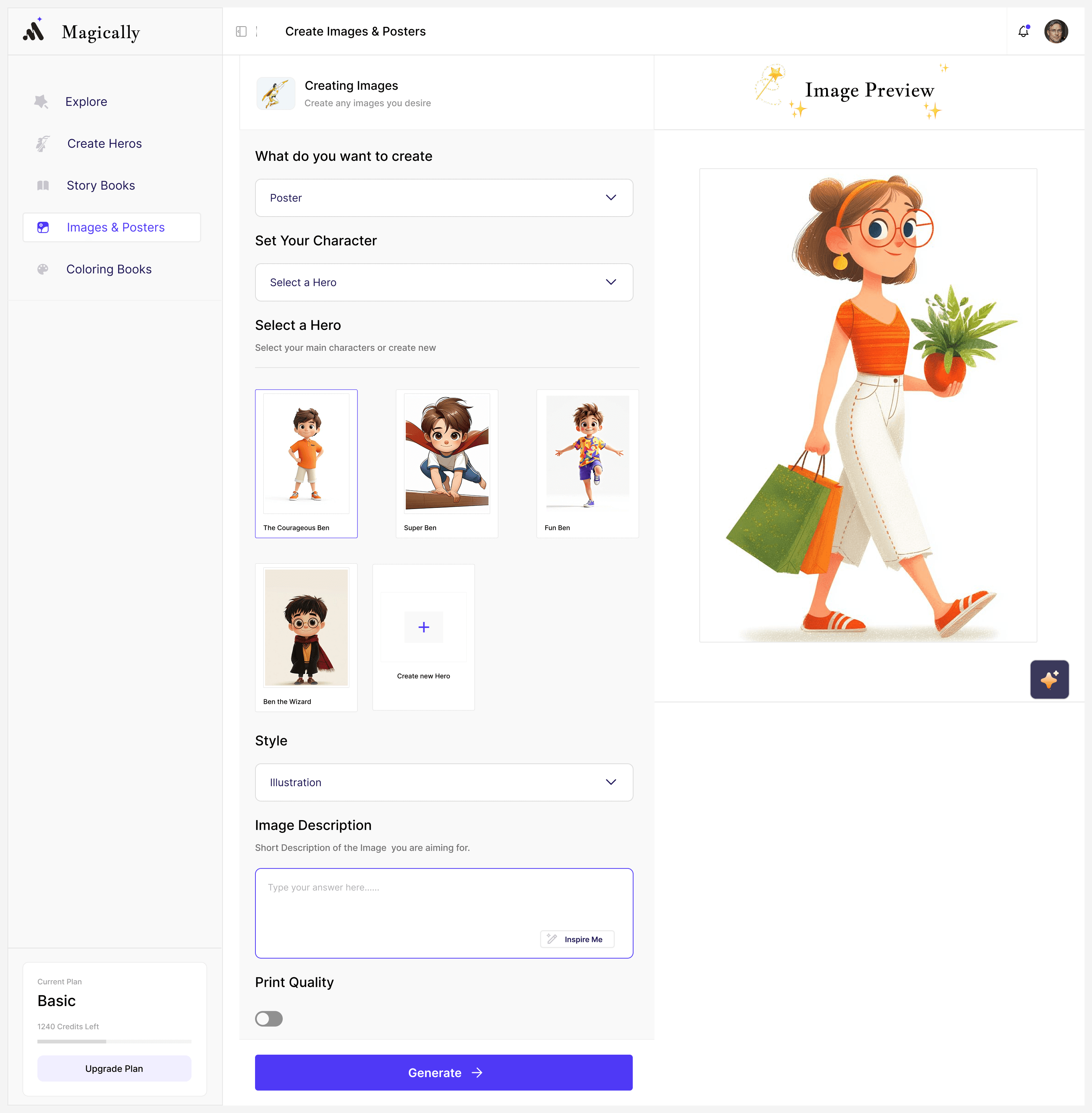 Personalized Creative Outputs – Generate posters, wall art, bedroom decor, and coloring books from custom heroes.