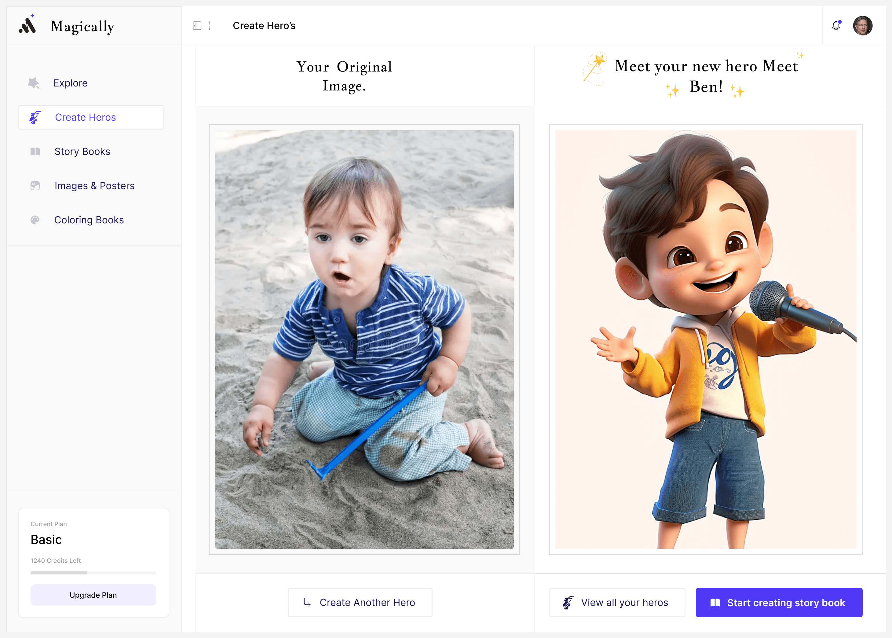Magically is an AI-powered storytelling platform designed for parents and children to co-create personalized storybooks, characters, and printable keepsakes. By transforming children into the heroes of their own stories, the platform blends guided AI creation, emotional UX design, and physical print experiences into a single, family-friendly ecosystem.