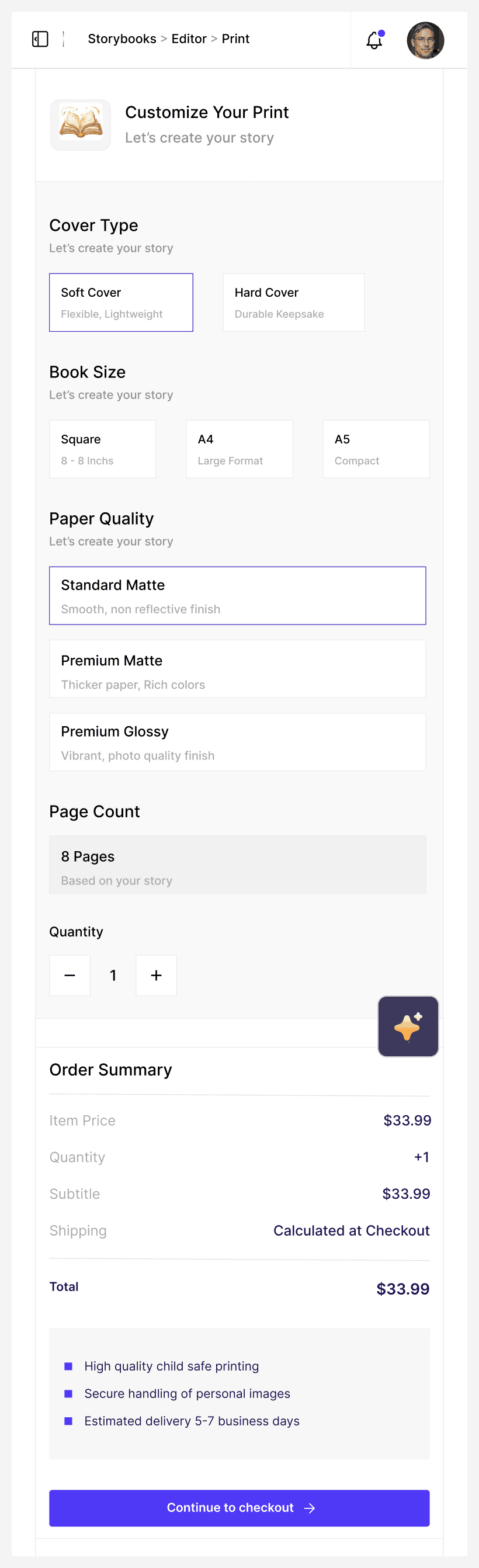 Seamless Print Flow – Convert digital creations into physical keepsakes with configurable formats and lightweight checkout.