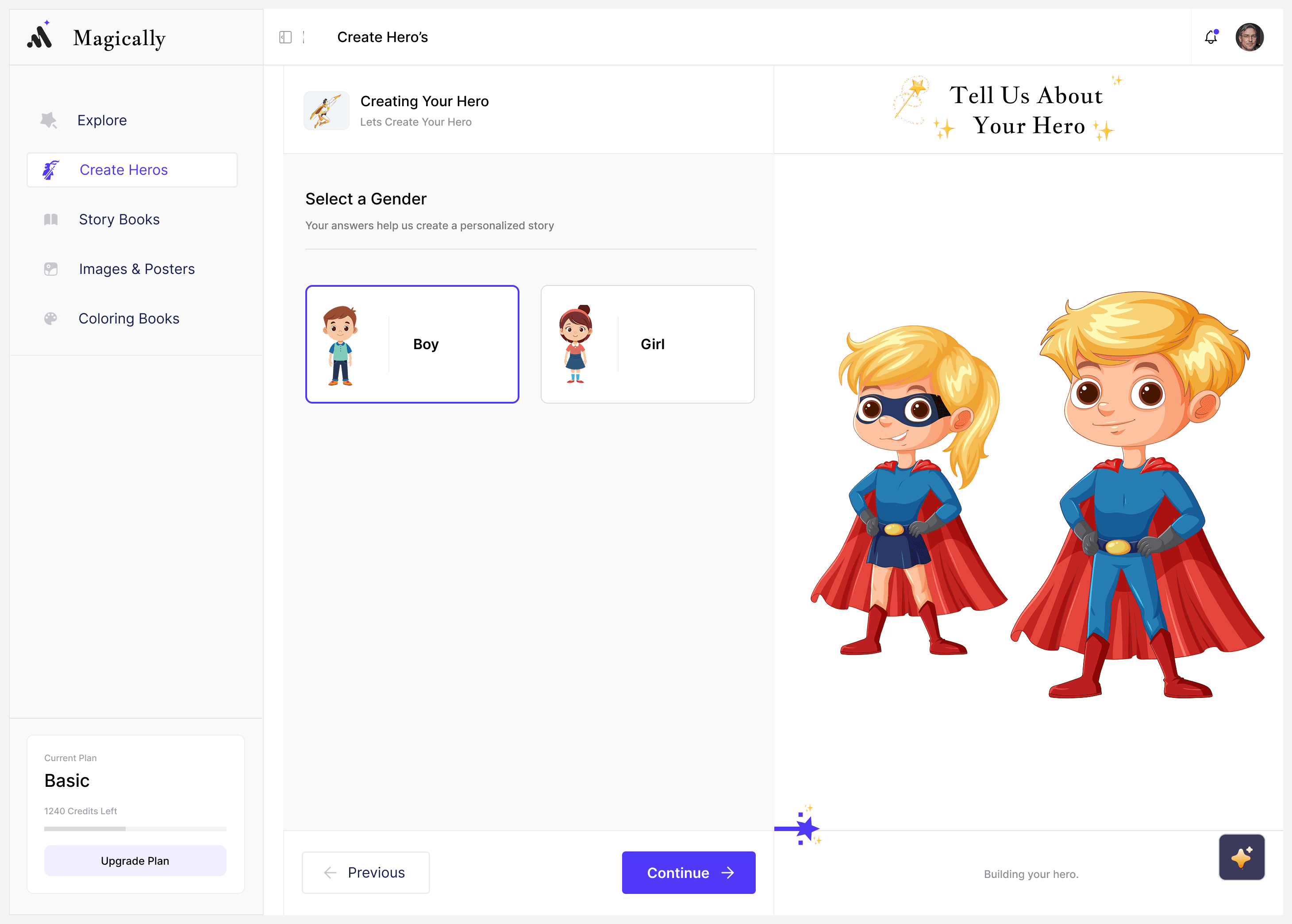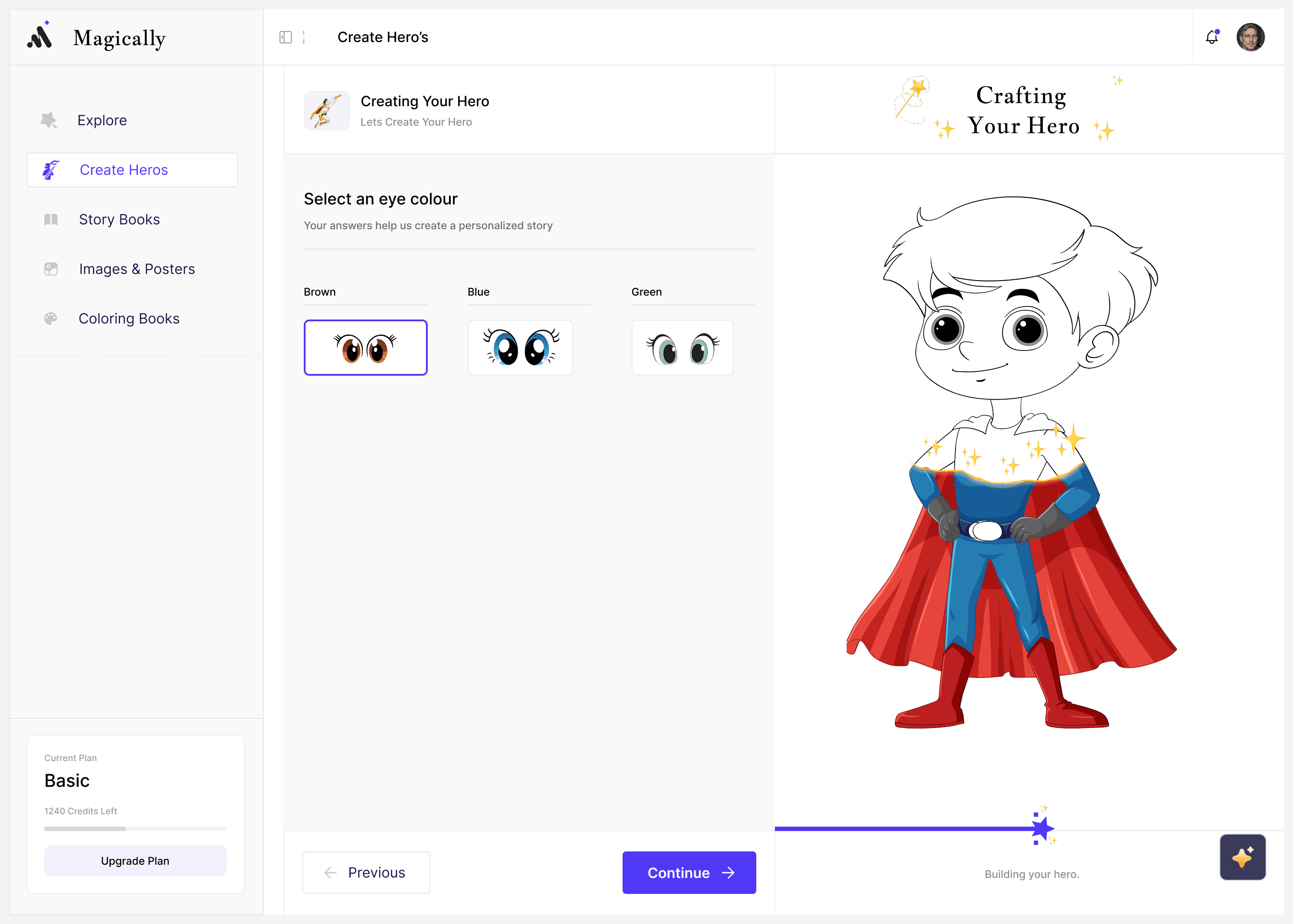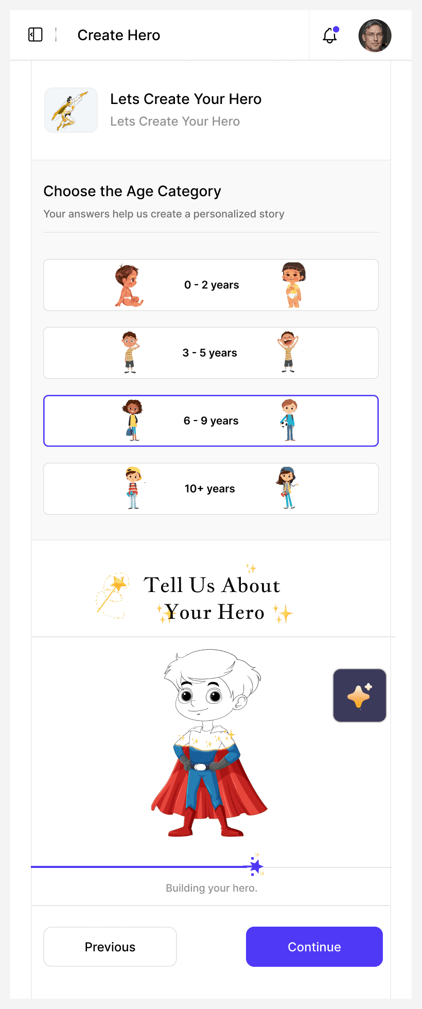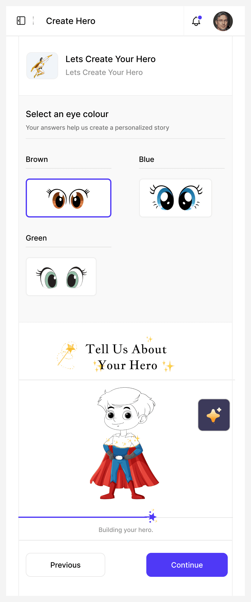 Designed progressive visual feedback for hero and story creation