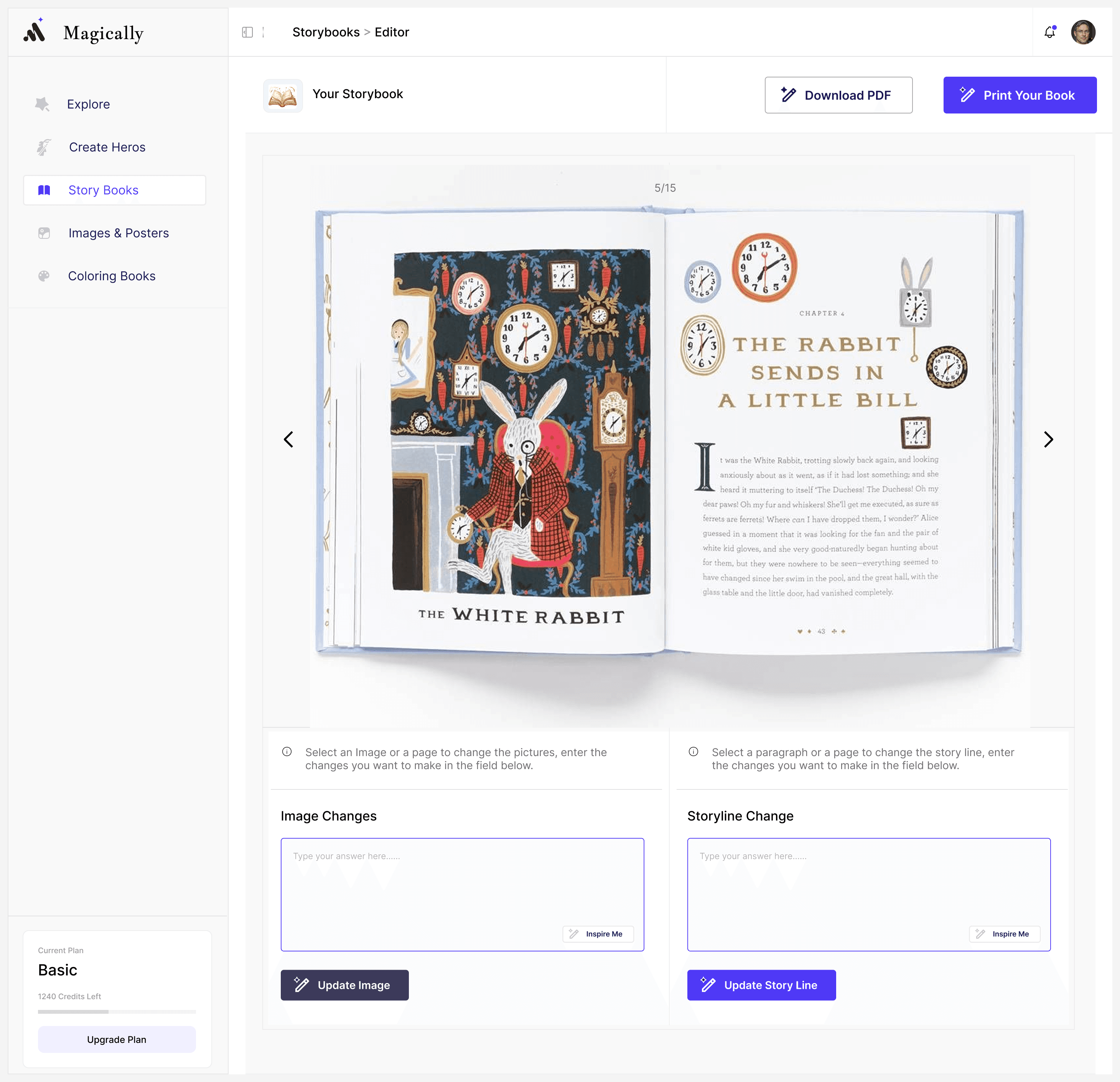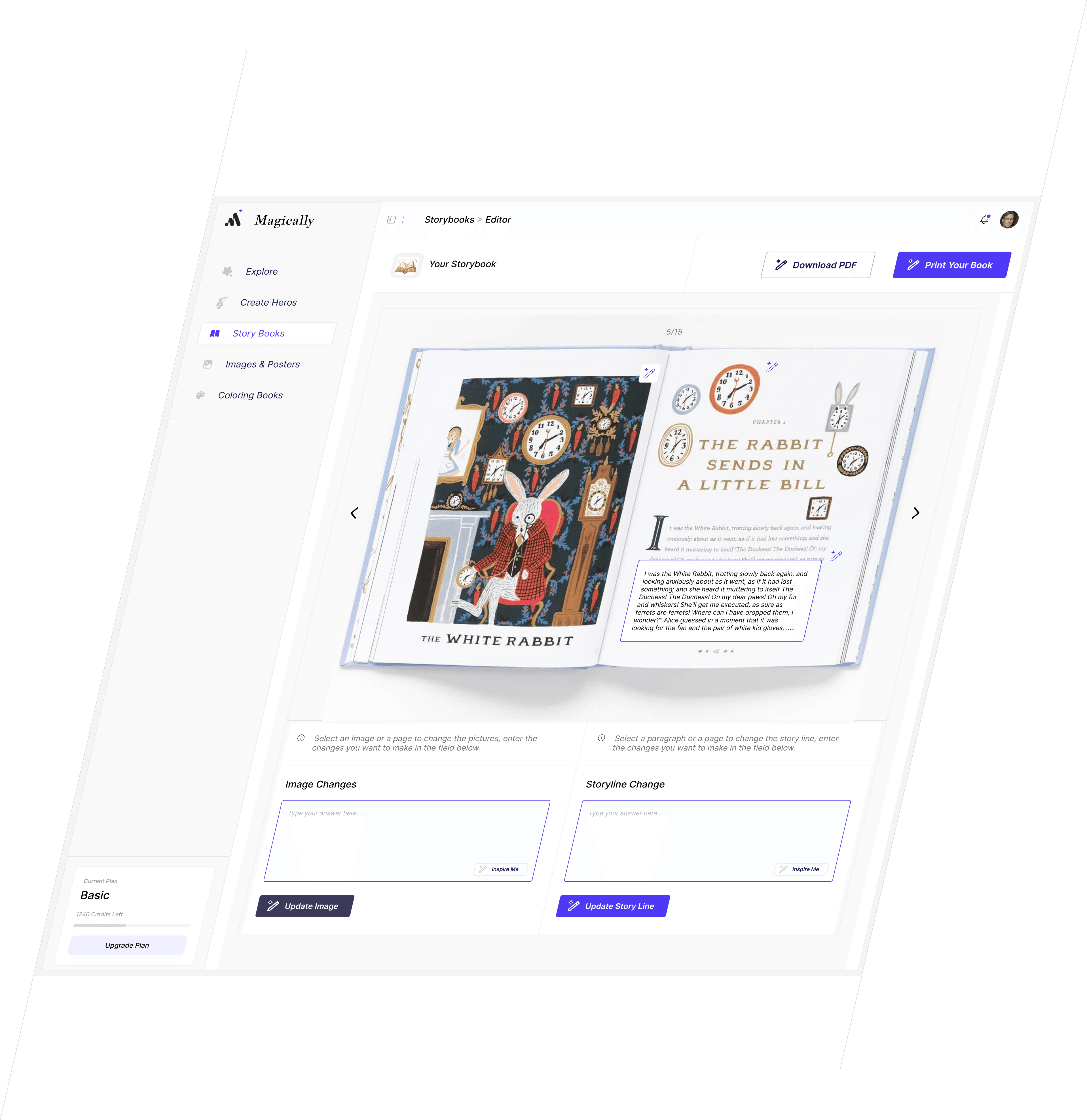 Interactive Storybook Editor – Edit text, regenerate illustrations, and refine scenes at the page level.