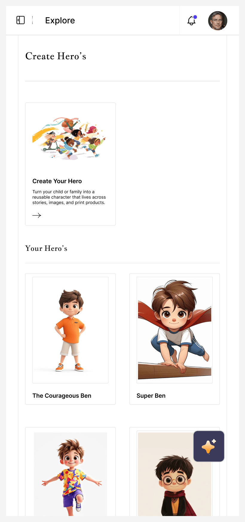 Hero-Based Character System – Turn children and families into reusable story avatars across books, images, and print products.