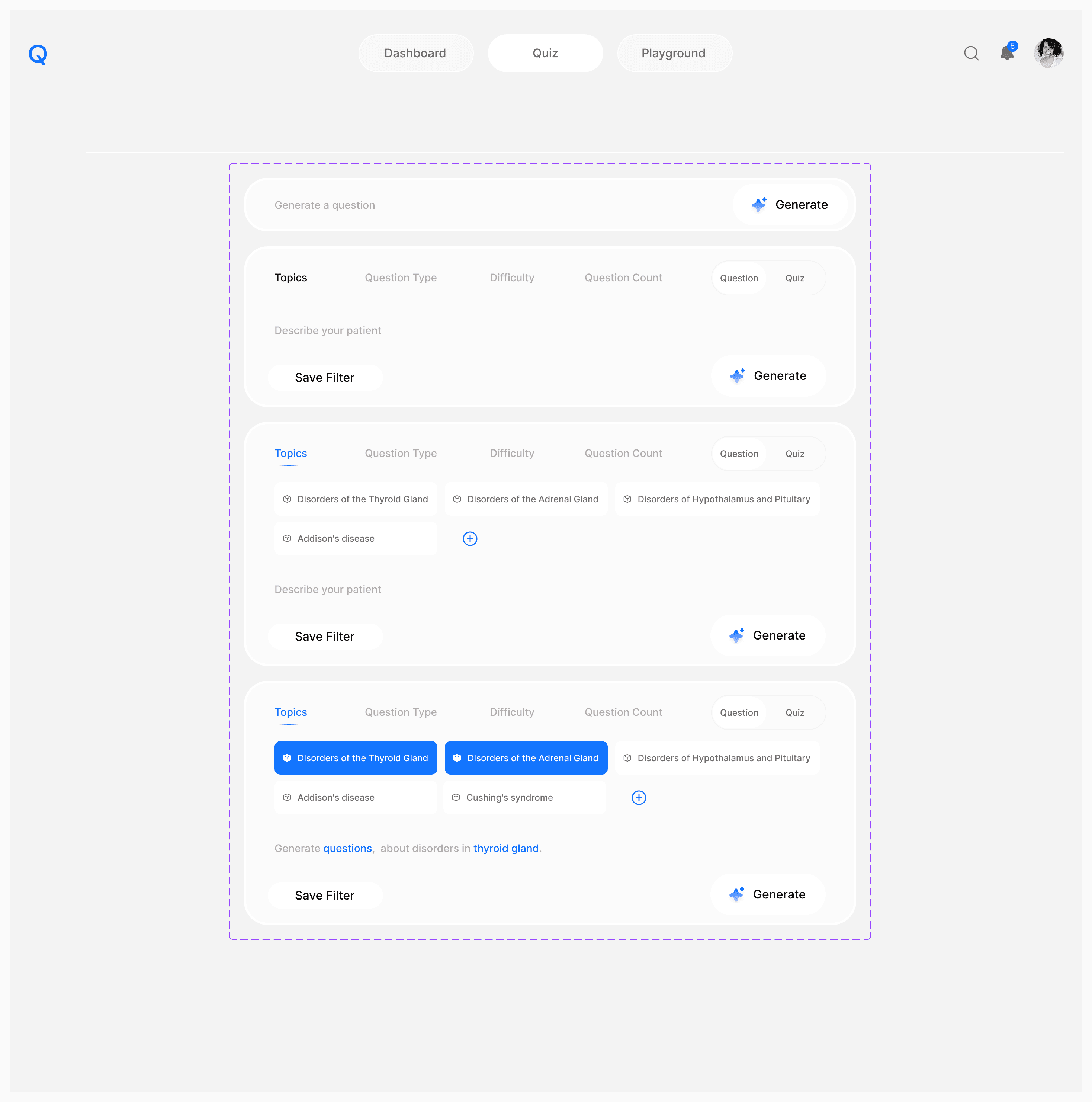 Med Quiz is a modular quiz and assessment platform initially designed for the endocrinology sector. It empowers both patients and healthcare professionals with intelligent, adaptive quizzes that provide instant feedback and actionable insights.